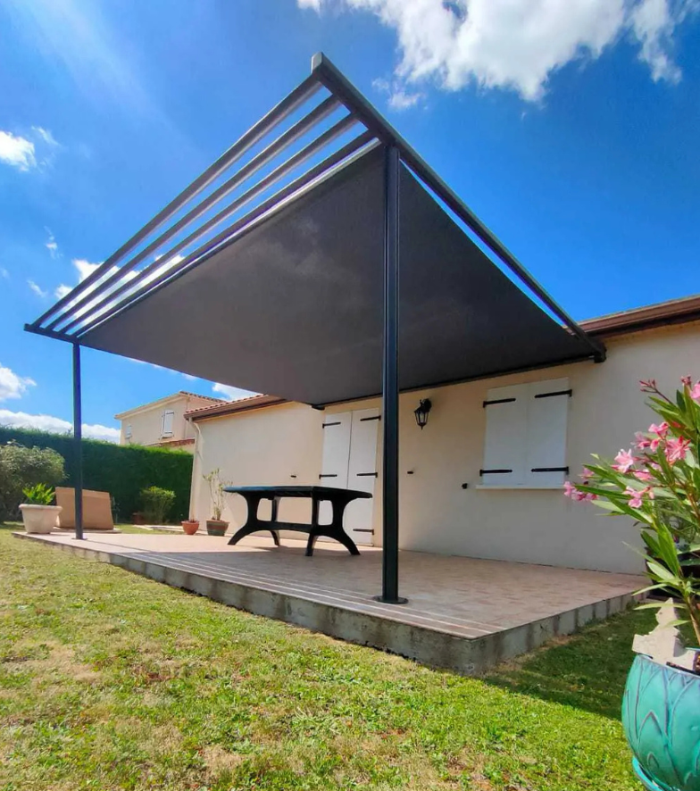 Sublimez votre extérieur avec une pergola à toile conçue pour offrir protection et élégance. Sa toile, solide et modulable, permet de créer un espace ombragé agréable à toute heure de la journée. Durable et esthétique, elle rend votre terrasse plus accueillante et fonctionnelle.